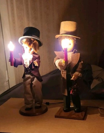 Vintage 24″Animated Christmas ENGLUSH?Girl & BoyCarolers w/ Lighted Candles NICE